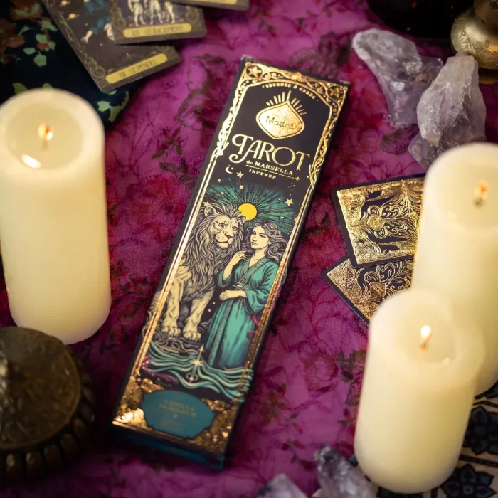 O Incenso Tarot de Marselha Baunilha & Olíbano da Sagrada Madre foi criado para elevar a vibração do ambiente e apoiar leituras de Tarot sensíveis e intuitivas.